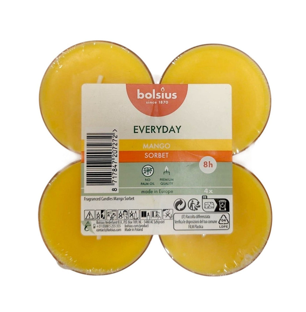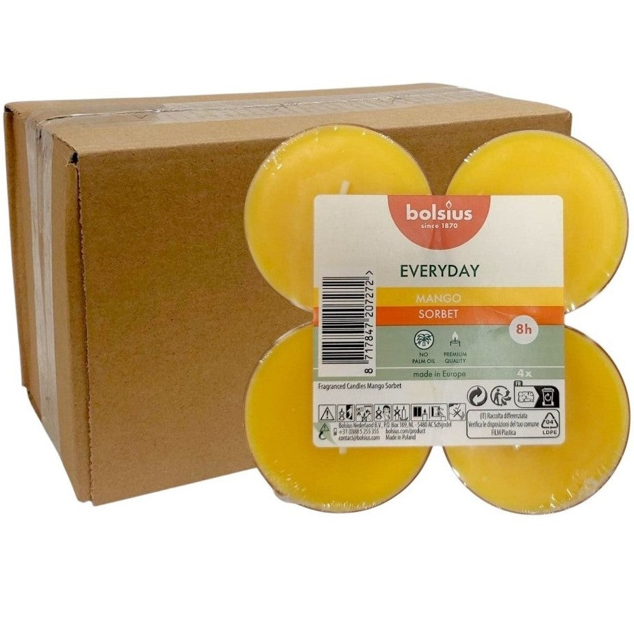 • Scented Τealights Pack of 8 Clear Cup Bolsius Everyday Two-Tone 4hr Burning Time - Mango Sorbet Box of 12 Pieces