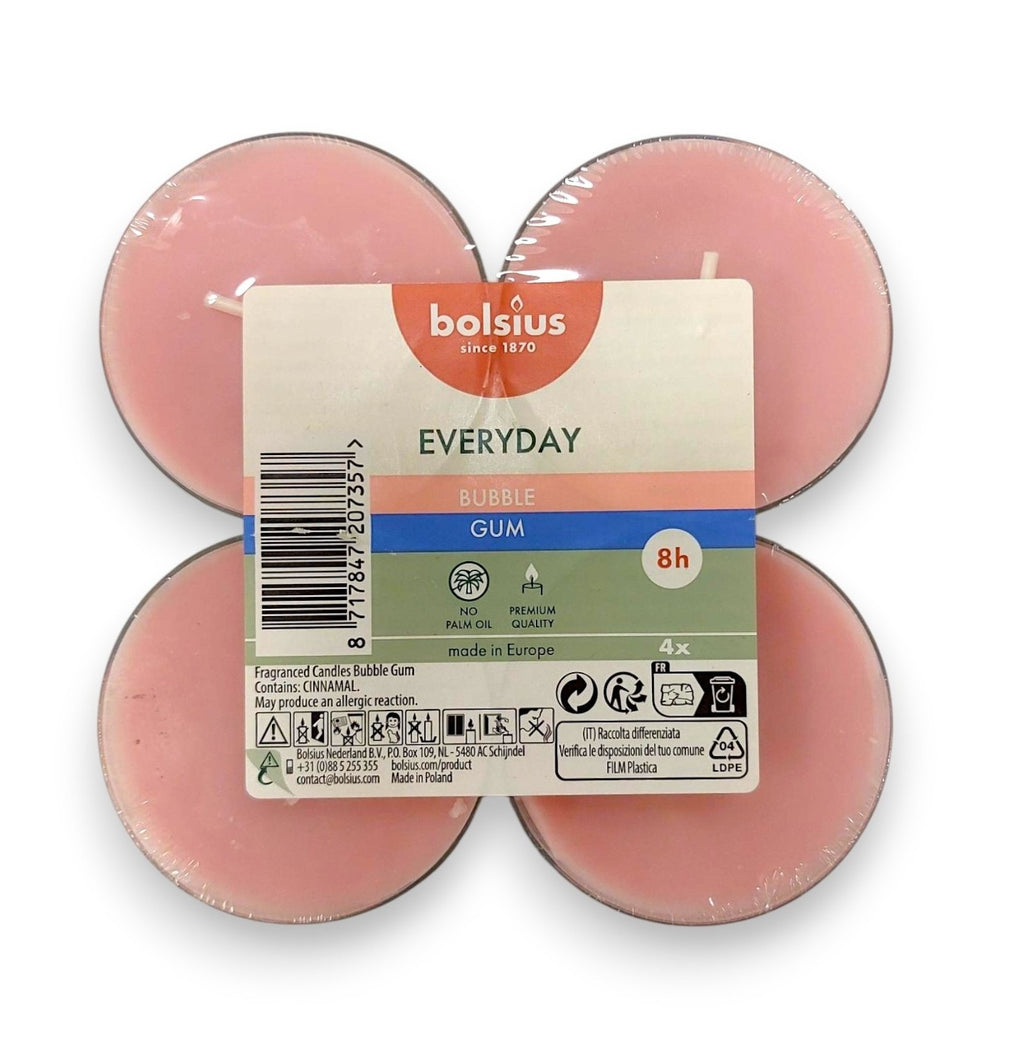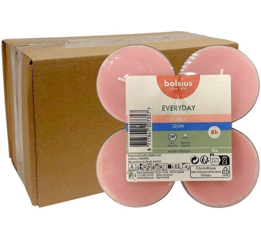 • Scented Τealights Pack of 8 Clear Cup Bolsius Everyday Two-Tone 4hr Burning Time - Bubble Gum Box of 12 Pieces