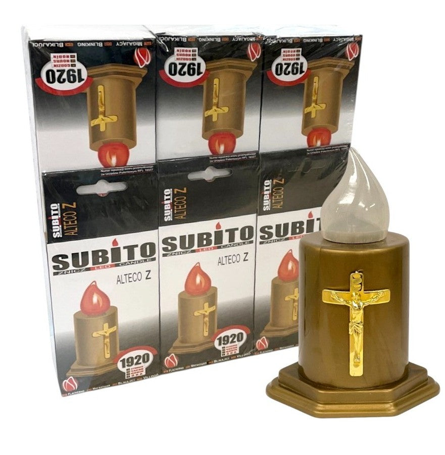 Ηλεκτρικό Κερί SUBITO Alteco Z Χρυσό με Λευκή Φλόγα Συσκευασία 6τμχ