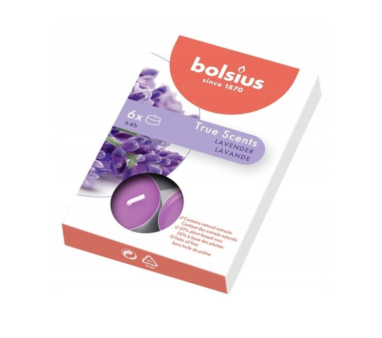 • Scented Τealights Box of 6 Bolsius True Scents 4hr Burning Time - Lavender Box of 20 Pieces