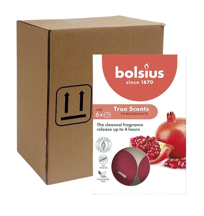 • Scented Τealights Box of 6 Bolsius True Scents 4hr Burning Time - Pomegranate Box of 20 Pieces