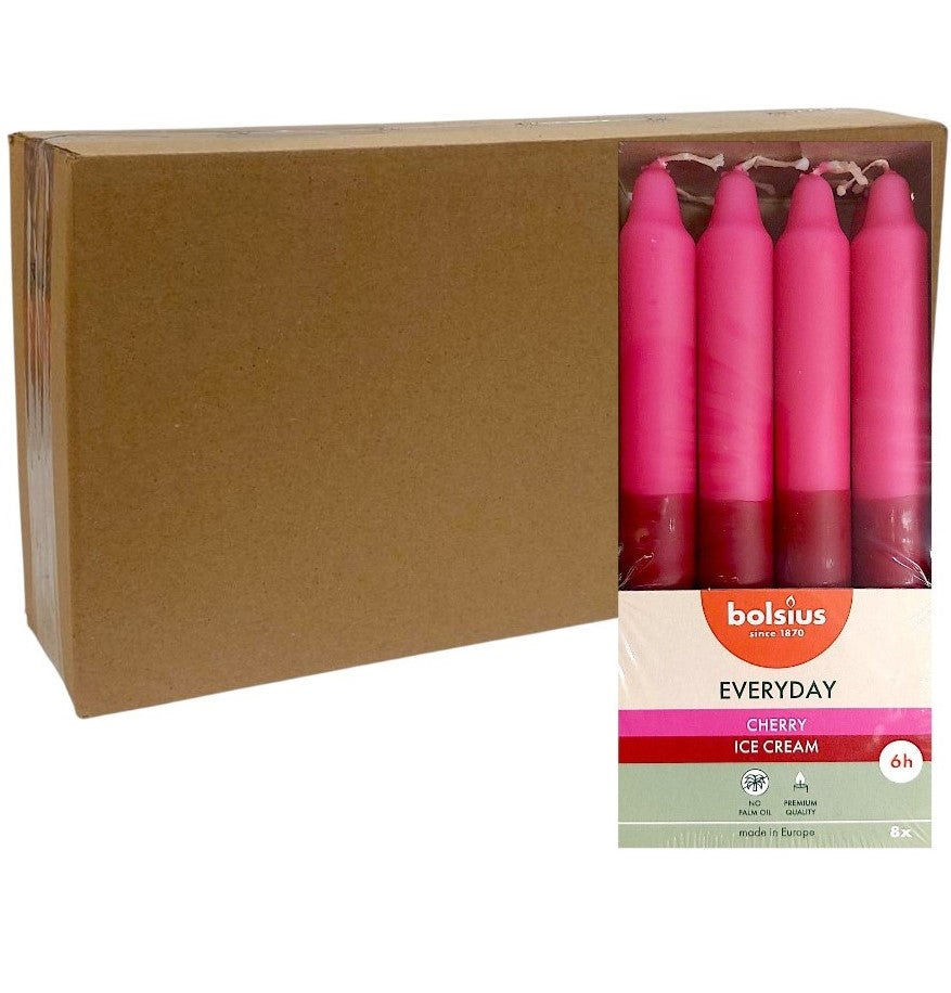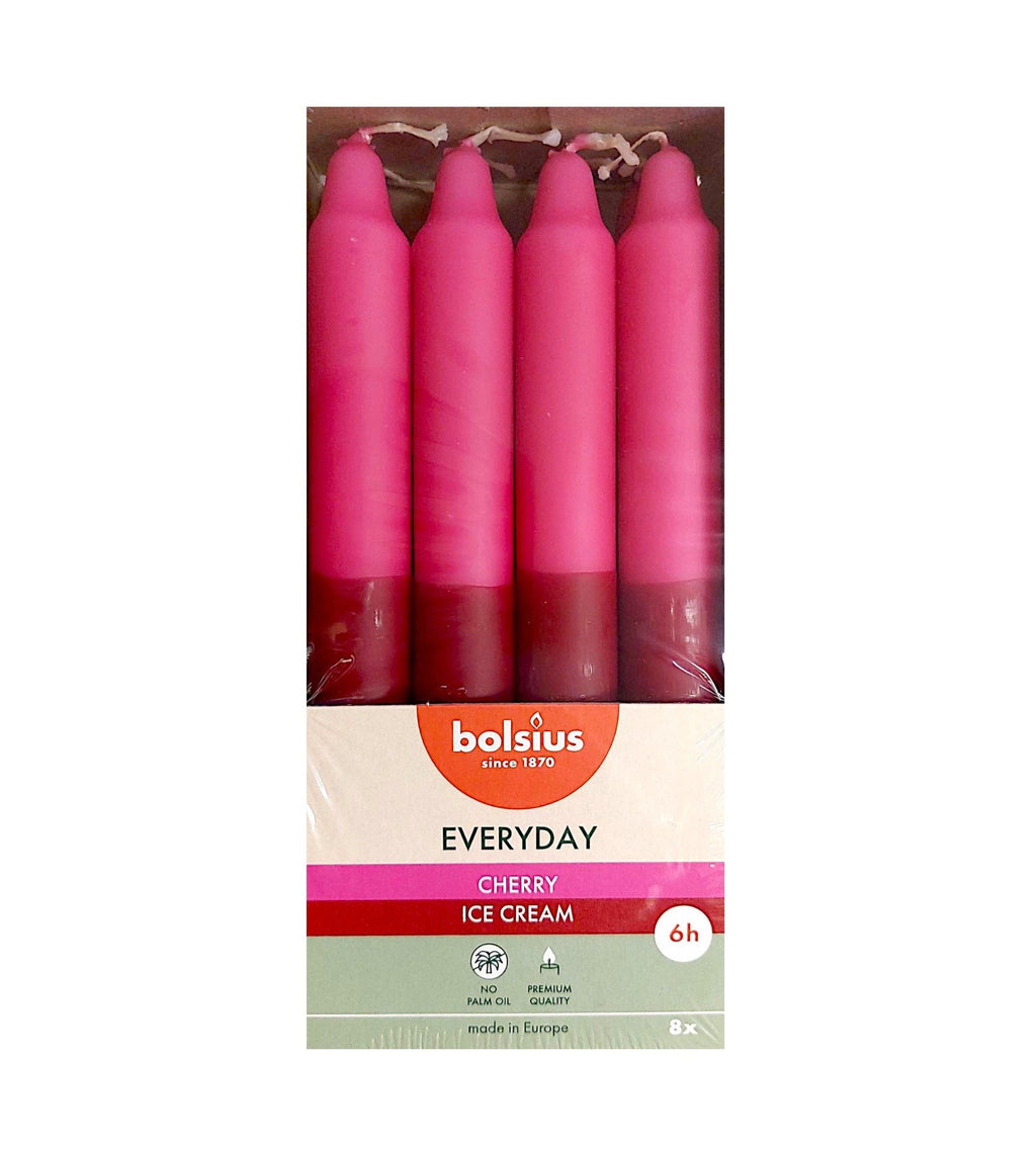 • Household Candles 180/21.3mm Bolsius Everyday Two-Tone Box 8 - Cherry Ice Cream Box of 8 Pieces