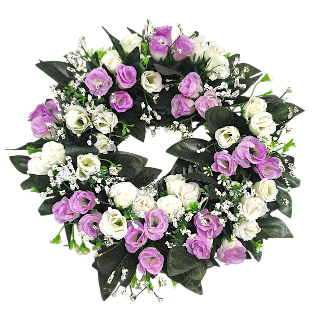 Στεφάνι Τριαντάφυλλο 30cm (ΤΗΙΜ36008) - Λιλά με Λευκό