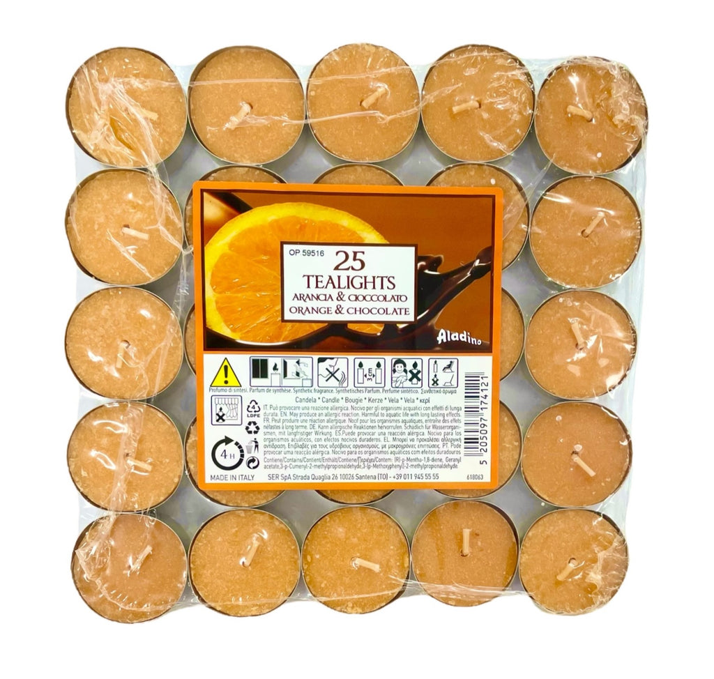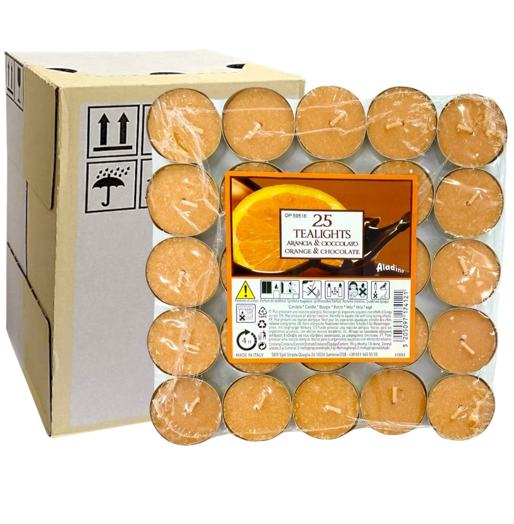 • Scented Τealights Pack of 25 SER Synthetic Fragrance 4hr Burning Time - Orange & Chocolate Box of 17pcs