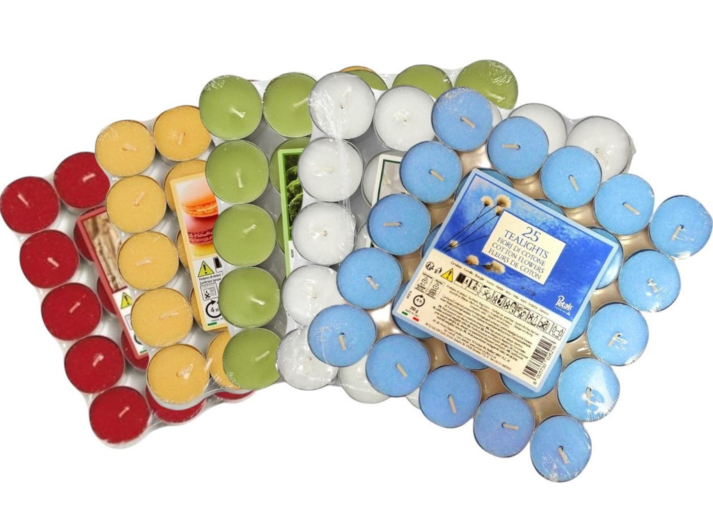 • Scented Τealights Pack of 25 SER Synthetic Fragrance 4hr Burning Time - In Various Fragrances Box of 17pcs