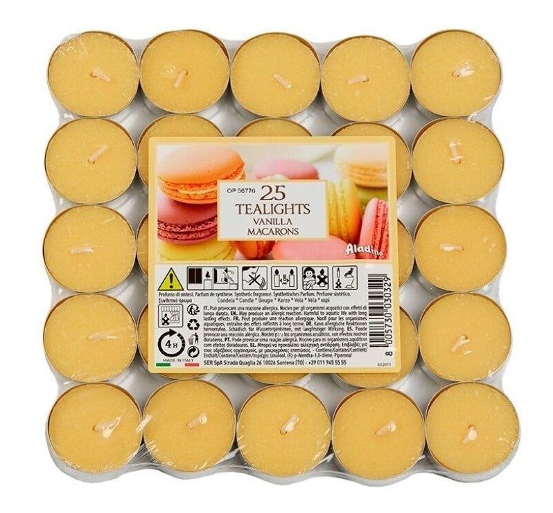 • Scented Τealights Pack of 25 SER Synthetic Fragrance 4hr Burning Time - Vanilla Macarons Box of 17pcs