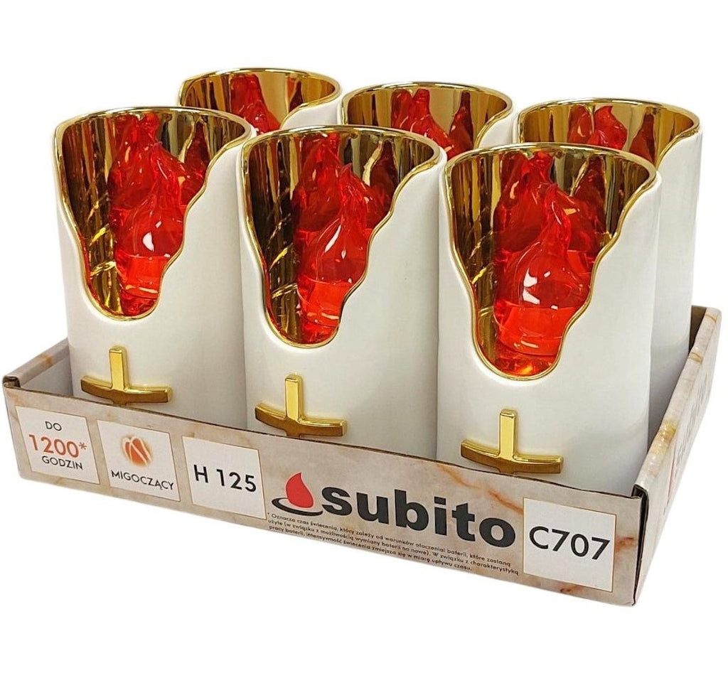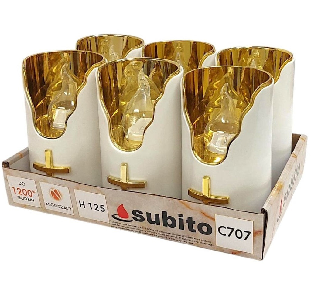 Ηλεκτρικό Κερί Subito C707 Λευκό με Χρυσή Πλάτη - Συσκευασία 6τμχ
