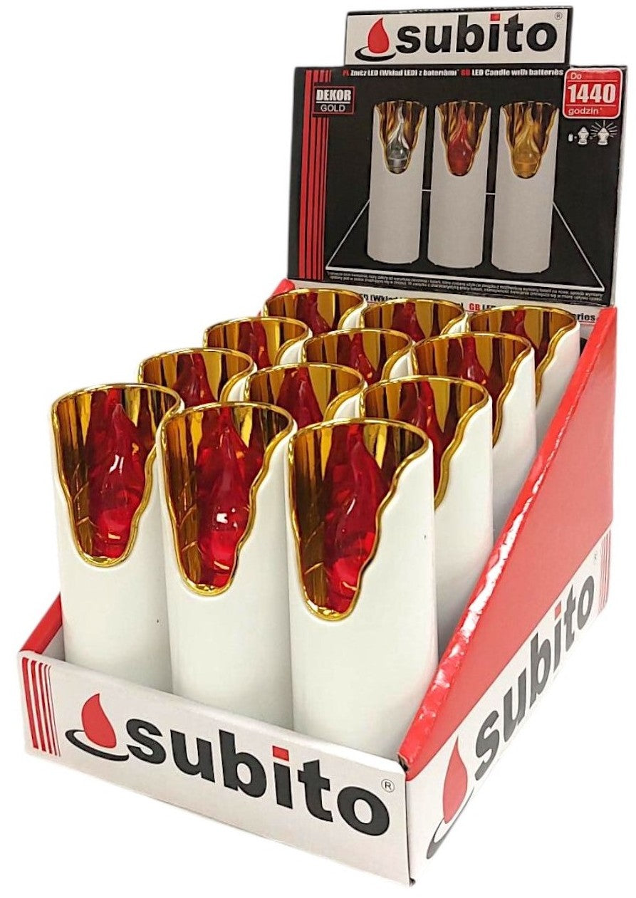 Ηλεκτρικό Κερί Subito Decor Λευκό με Χρυσή Πλάτη - Κόκκινη Φλόγα Συσκευασία 12τμχ