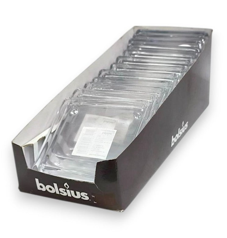 • Glass Plate Square Bolsius 100/100mm Box of 12 Pieces