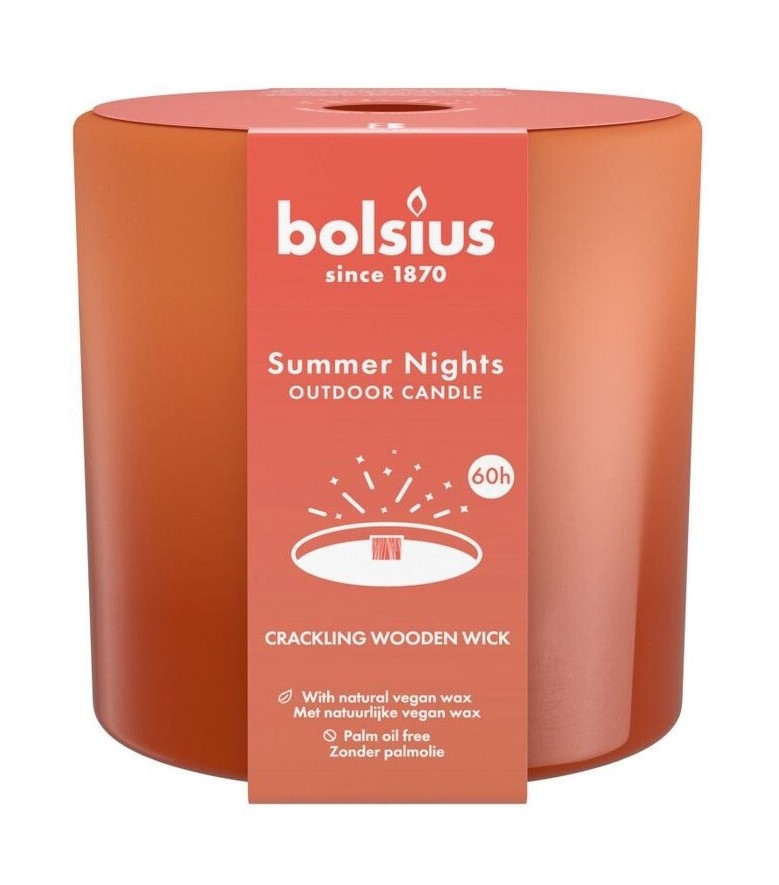 • Περιγραφή: Αφήστε τον εαυτό σας να περιποιηθεί από τη μεσογειακή εμφάνιση των εξωτερικών κεριών Bolsius Summer Nights. Ακούστε τον χαλαρωτικό ήχο του φλεγόμενου ξύλινου φυτιλιού, που θυμίζει το τρίξιμο ενός τζακιού. Εμπνευσμένο από τα έντονα, ζεστά χρώματα ενός καλοκαιρινού ηλιοβασιλέματος!