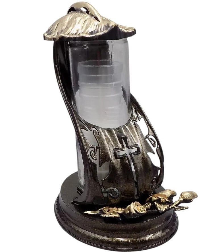 • Glass Graveyard Lights Cortina Flower with Cross - Bronze