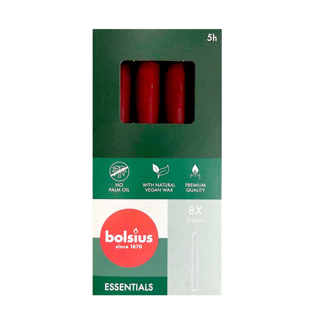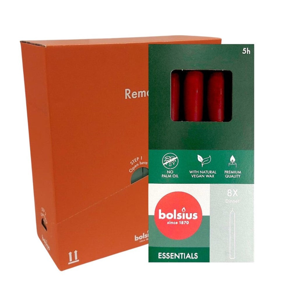 Κεριά Κηροπηγίου με Φυσικό Vegan Κερί 170/20mm Bolsius 8άδα - Velvet Red Κιβώτιο 4Τμχ