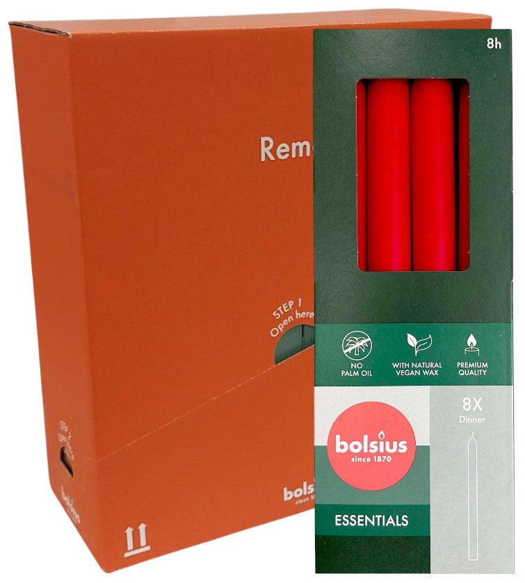 Κεριά Κηροπηγίου με Φυσικό Vegan Κερί 230/20mm Bolsius 8άδα - Delicate Red Κιβώτιο 4Τμχ