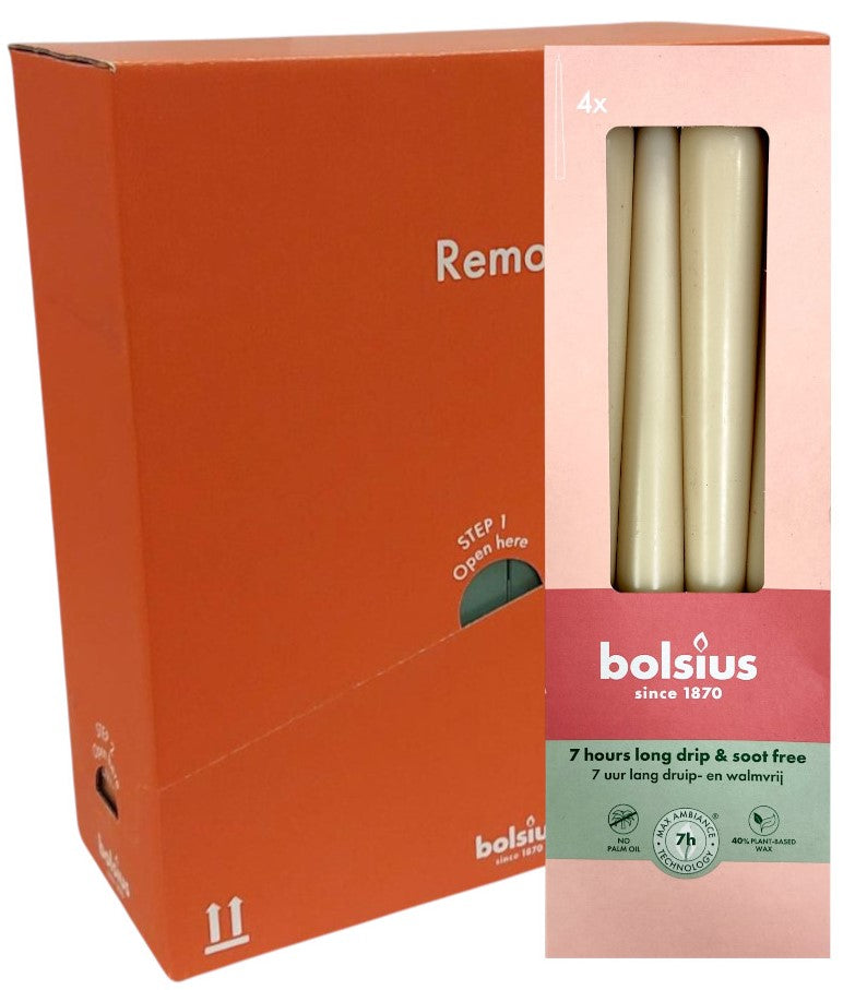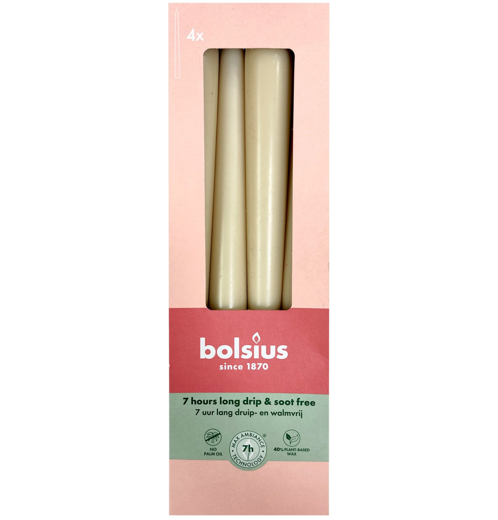 Κεριά Κωνικά Κηροπηγίου (Σπαρματσέτα) 245/24mm Bolsius 4άδα - Oat Beige Κιβώτιο 8Τμχ