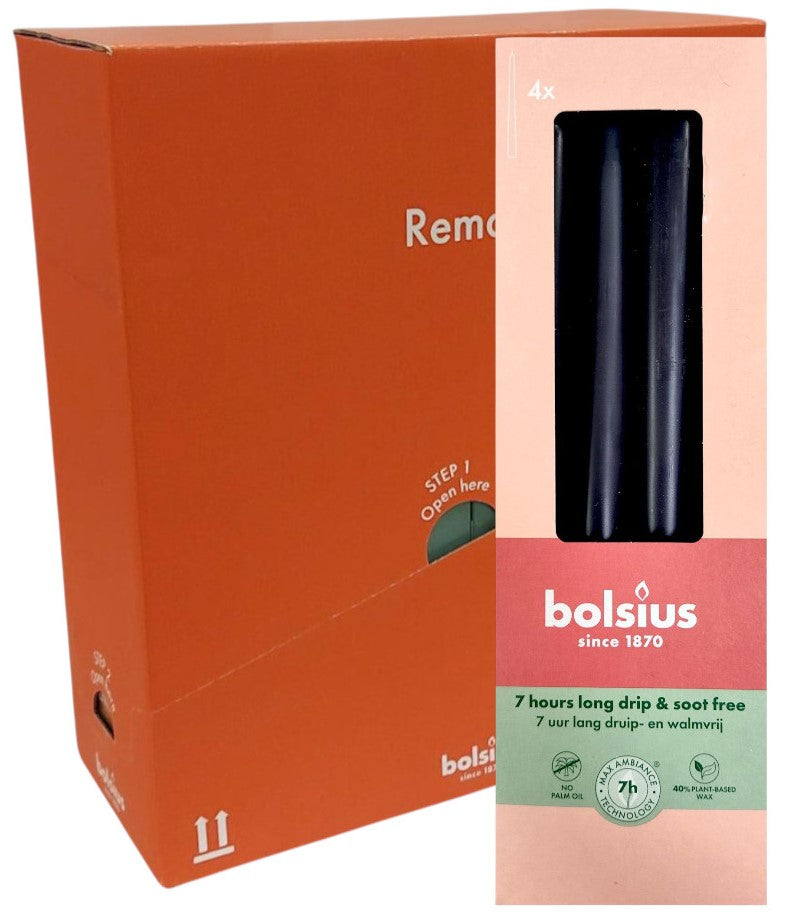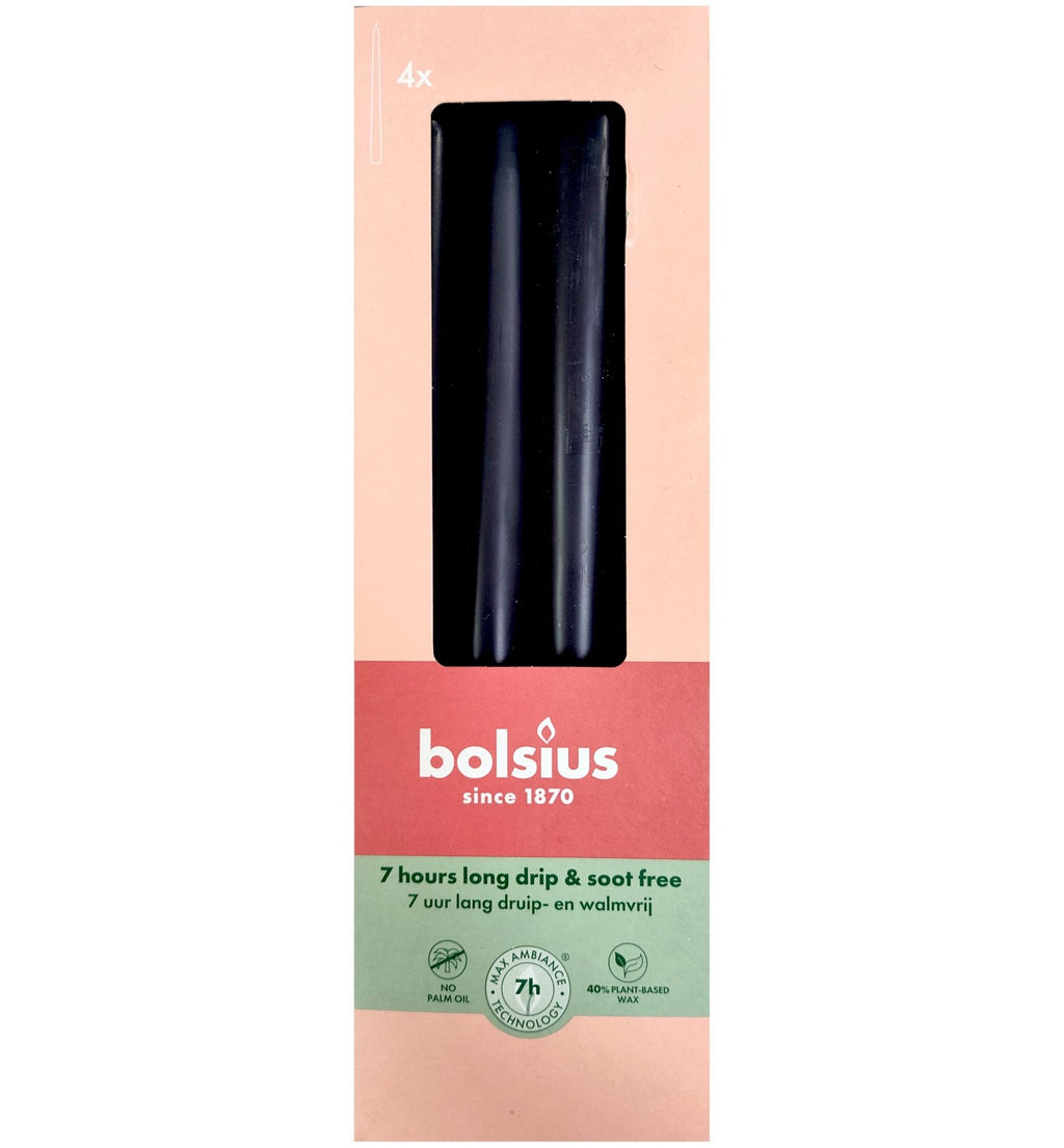 Κεριά Κωνικά Κηροπηγίου (Σπαρματσέτα) 245/24mm Bolsius 4άδα - Stormy Grey Κιβώτιο 8Τμχ