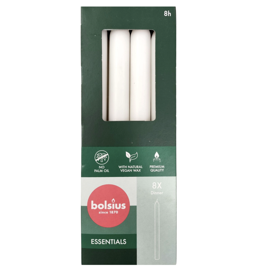 Κεριά Κηροπηγίου με Φυσικό Vegan Κερί 230/20mm Bolsius 8άδα - Cloudy White