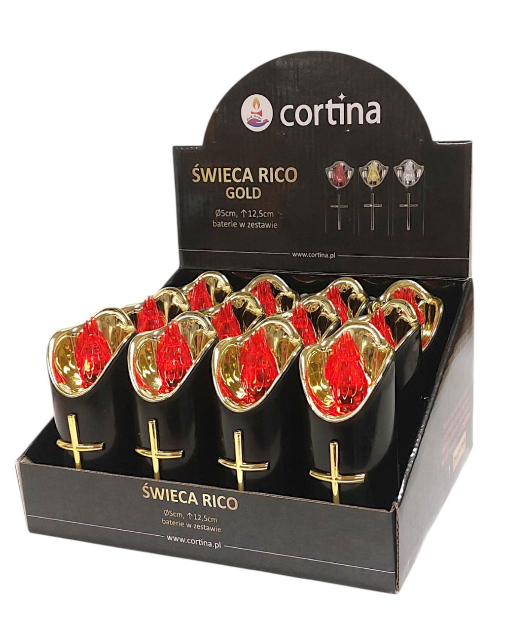 Ηλεκτρικό Κερί Cortina Rico Μαύρο με Κόκκινη Φλόγα Συσκευασία 12τμχ